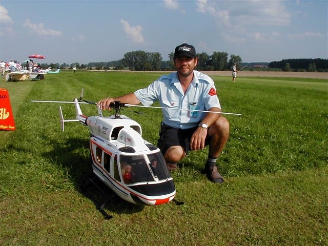 Seit 01.10.1996 bin ich RC Pilot. Mitglied beim MBC Hemau e.V seit 01.11.1996. Angefangen habe ich mit einem Motorflieger (Taxi ) der aber nicht lange hielt! Dann umgestiegen auf einen Elektro-Flieger (Junior Sport) danach einen E-Flieger Qwarsar1999 umgesattelt auf die Königs klasse Hubschrauber. Meine ersten Versuche mit einem gebrauchten Modell lwaren nicht von großen Erfolg. Dann lernte ich Alfred Kreidl kennen kaufte mir einen neuen Hubi (Super Sport) von Robbe dadurch ich wenig Zeit habe ging es schleppend aber stetig Berg auf. Es folgte die BK117 und die Hughes 500 .